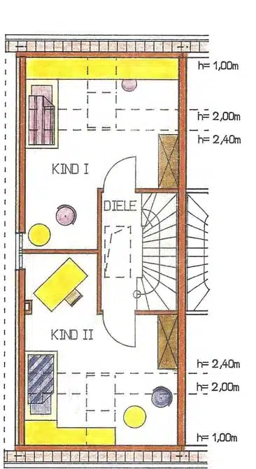 Im 1. Stockwerk finden Sie das Badezimmer mit Badewanne. Links und rechts vom Badezimmer, sind die ersten beiden ca. 15 Quadratmeter großen Schlafzimmer. Eines der Zimmer hat einen Südbalkon. Im Dachgeschoss befinden sich die beiden nächsten Schlafzimmer, welche sich durch die Dachschrägen perfekt als Kinderzimmer eignen.