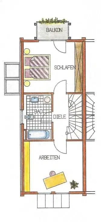 Im Erdgeschoss befindet sich die Küche, das Gäste-WC und ein großer Wohn- und Essbereich mit Zugang zur Terrasse und dem Garten. Im 1. Stockwerk finden Sie das Badezimmer mit Badewanne, links und rechts vom Badezimmer, sind die ersten beiden Schlafzimmer. Eines der Zimmer hat einen Balkon. Im Dachgeschoss befinden sich die beiden nächsten Schlafzimmer, welche sich durch die Dachschrägen perfekt als Kinderzimmer eignen.