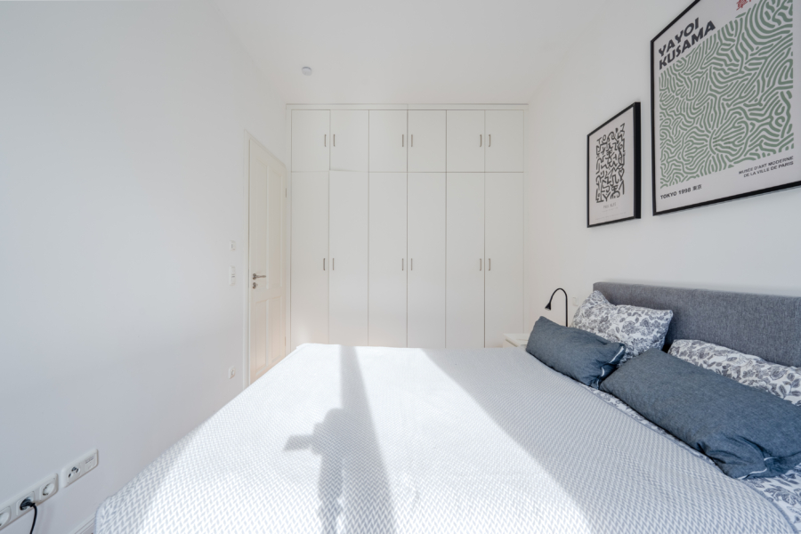Das Schlafzimmer verfügt bereits über einen geräumigen Einbauschrank und bietet zudem viel Licht sowie ausreichend Platz für ein großes Bett, weitere Schränke oder einen kleinen Arbeitsplatz am Fenster – ideal für Homeoffice oder kreative Projekte.